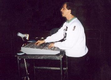 tk2.jpg (22K) - TK fearlessly tackles the desk on an LBI gig somewhere - probably at the Union Chapel.